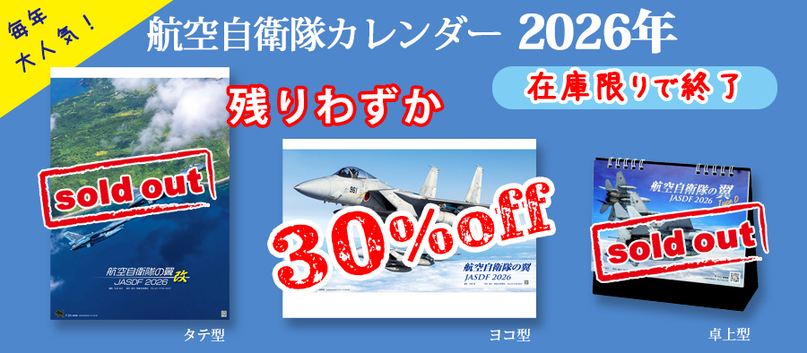 30%OFF!!【航空自衛隊カレンダー】2026年 航空自衛隊の翼 JASDF ヨコ型 A2判 壁掛け 毎年大人気のカレンダー